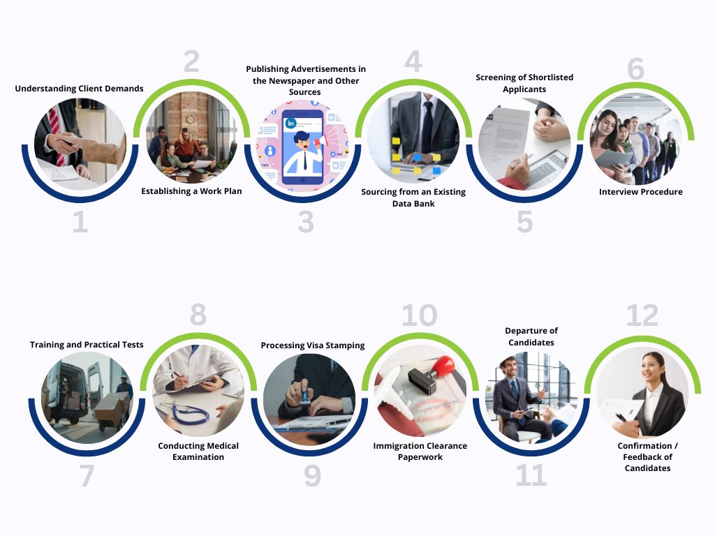 We further understand the job description of the workforce required and outline a robust recruitment strategy to attract ideal candidates internationally.